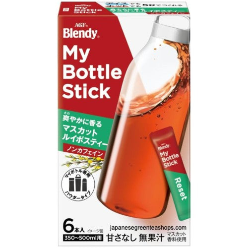 (AGF) Blendy My Bottle Stick Refreshingly Scented Muscat Rooibos Tea is a box of 6 individually wrapped instant tea containers. Just add one container to your favorite drink bottle for a delicious Refreshingly Scented Muscat Rooibos Tea easily and conveniently anytime.