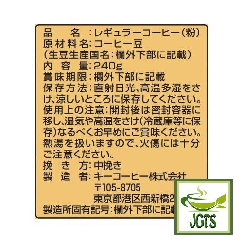 Manufacturer: Key Coffee Co., Ltd., 2-34-4 Nishi Shimbashi, Minato-ku, Tokyo, Japan 105-8785.