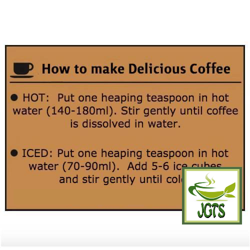 Hot: Put one heaping teaspoon (2 grams) in hot water (140-180ml). Stir gently until coffee is dissolved in water.