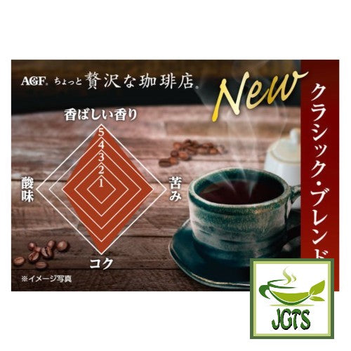 Luxurious Coffee Shop Classic Blend Instant Coffee. A carefully selected coffee bean is weaved with High Quality Rich Flavor and Rich Fragrance by AGF's own T2ACMI roasting technology.