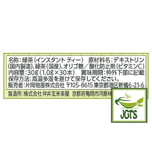 Ingredients: Green Tea (domestic, Japan) Dextrin, oligosaccharide/antioxidant (vitamin C).