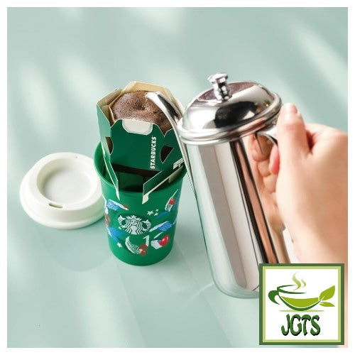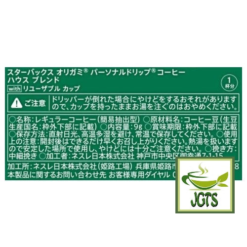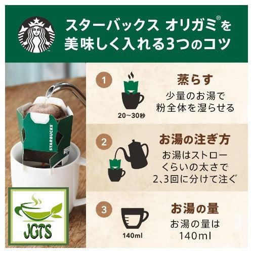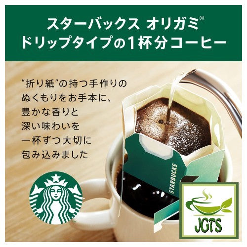 The box includes 1 bag of drip type Starbucks Origami House Blend Coffee. You can enjoy the taste of Starbucks anytime with the Starbucks logo cup. The original "drip type" coffee filter does not require any equipment to make a fresh brewed cup of coffee.