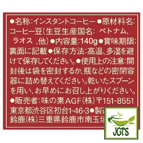 Manufacturer: Ajinomoto AGF Co., Ltd. 1-46-3 Hatsudai, Shibuya-ku, Tokyo, Japan.