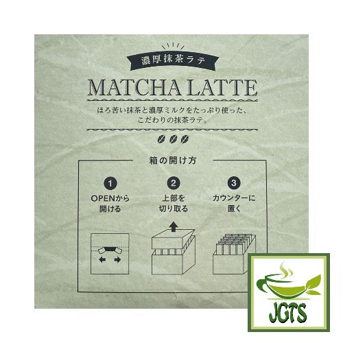Instructions:  (How to Brew)  Just by putting one stick in a cup and pouring hot water, you can easily enjoy an authentic Professional Rich Matcha Latte.