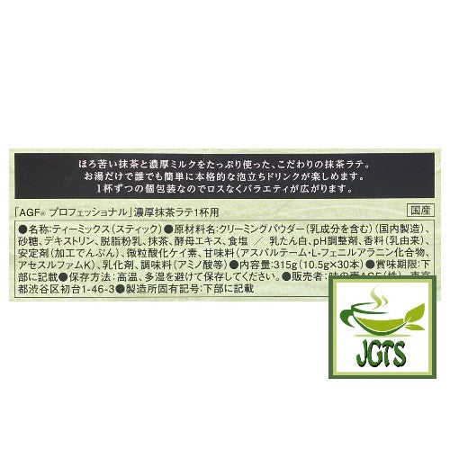 Enjoy the full-bodied flavor of AGF's Professional Rich Matcha Latte with a Bittersweet Matcha taste. Prepared with fluffy foam and rich milk, each individually-wrapped stick ensures a fresh cup of perfection every time.