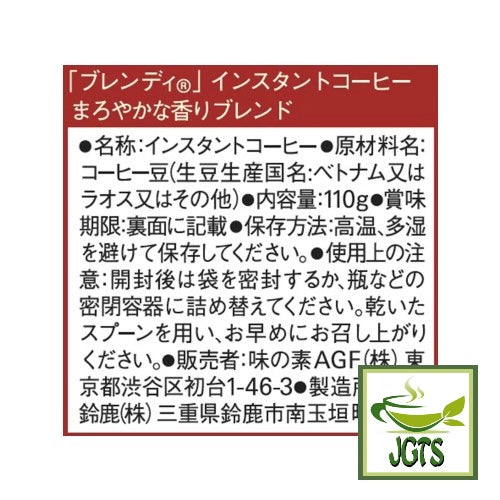 (AGF) Blendy Mellow Aroma Blend Instant Coffee has a Sweet Fresh Aroma and Mellow Rich body flavor.