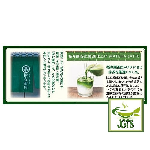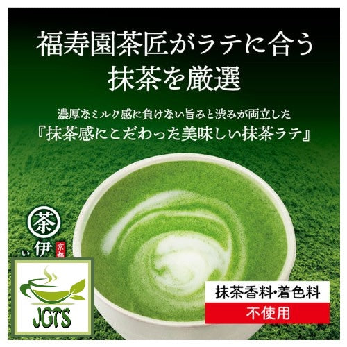 Made with flavorful first-grade Uji tea. Fukujuen tea masters have carefully selected matcha that goes perfectly with latte. A blend of matcha with a strong astringency that stands up to the rich milkiness, and matcha to create a deep green color. Contains no matcha flavorings or colorings.