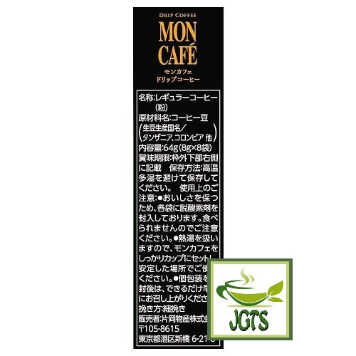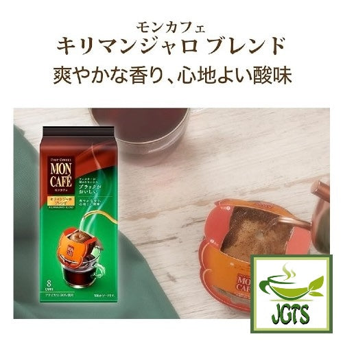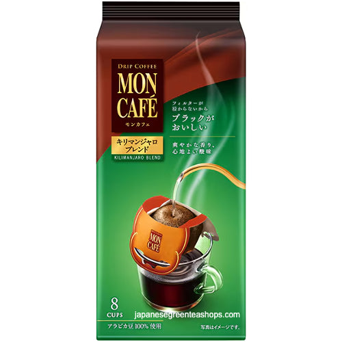 Kataoka Drip Coffee Mon Cafe Kilimanjaro Blend is a package containing 8  individually wrapped single serving "drip type" ground coffee filter bags, (drip bag) ready to brew right in your favorite coffee cup or mug!