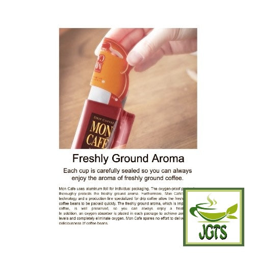 Mon Cafe quickly packs freshly ground coffee beans with its unique technology and production line specializing in drip coffee. It retains the "Freshly Ground Aroma" that is important for coffee, so you can always enjoy the fresh taste. (Once opened, please smell the Aroma).