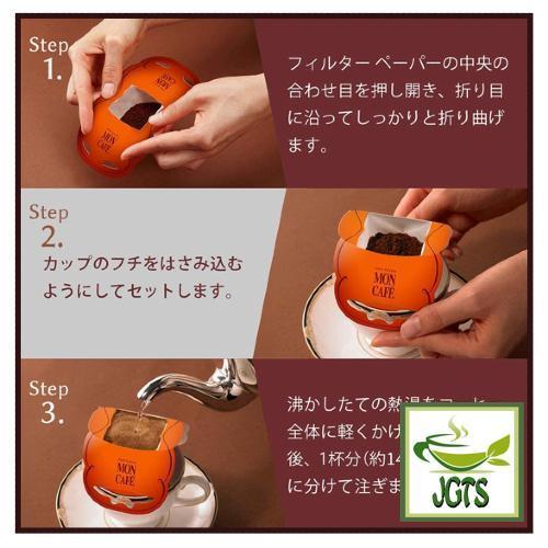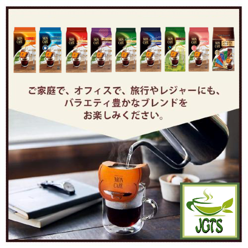 Kataoka Drip Coffee Mon Cafe Premium Blend is a package of 8 conveniently packaged single serving "drip type" ground coffee (filter bags, drip bag) ready to brew right in your favorite coffee cup or mug!