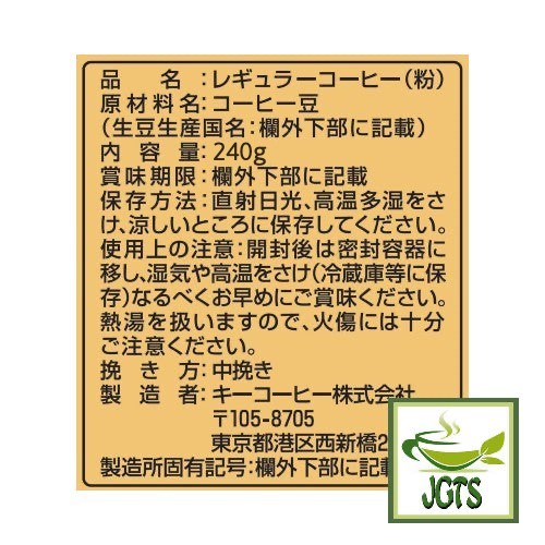 Manufacturer: Key Coffee Co., Ltd., 2-34-4 Nishi Shimbashi, Minato-ku, Tokyo, Japan 105-8785.