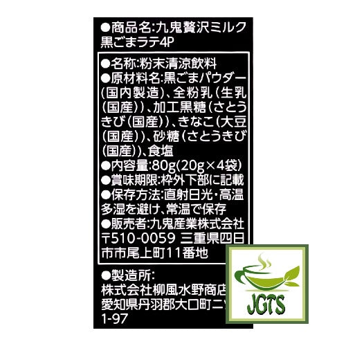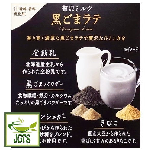Kuki Sangyo's Kuro Goma (Black Sesame) Latte does not contain artificial sweeteners, artificial flavoring, artificial coloring, preservatives, gluten, caffeine, genetically modified ingredients, or animal by products. Packed with Dietary Fiber, Calcium and Iron nutrients often deficient on a daily basis.