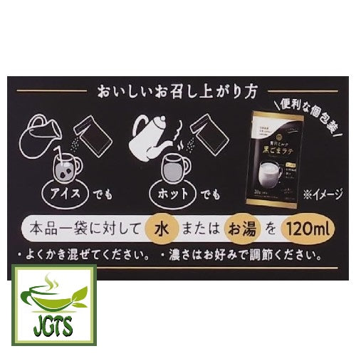 Instructions:  (How to Brew) Just by putting one container in a cup and pouring hot water, you can easily enjoy an authentic Kuro Goma (Black Sesame) Latte anytime.