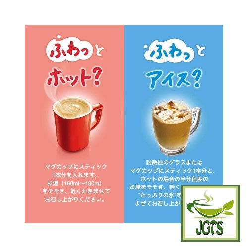 Instructions: (How to Brew). Just by putting one stick in a cup and pouring hot water, you can easily enjoy an authentic Nescafé Excella Fuwa Cafe Latte Mellow Milk anytime.