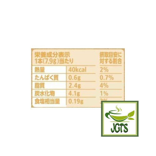 Nutrition: (Per 1 Stick 8g), Energy (Calories) 40kcal, Protein 0.61g, Lipid 2.4g, Carbohydrate 4.1g, Salt equivalent 0.19g.