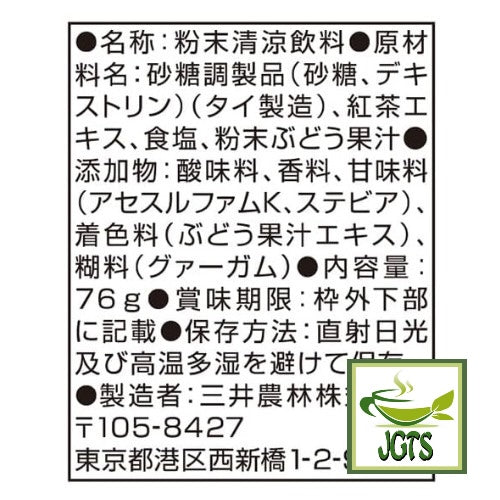 Ingredients: Sugar preparation (sugar, dextrin) (made in Thailand), black tea extract, salt, powdered grape juice.