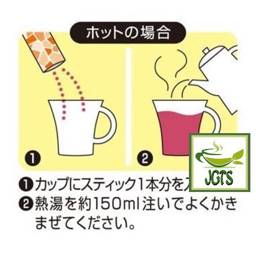 Hot: Pour one stick in a cup of hot water (150ml), stir well and enjoy.