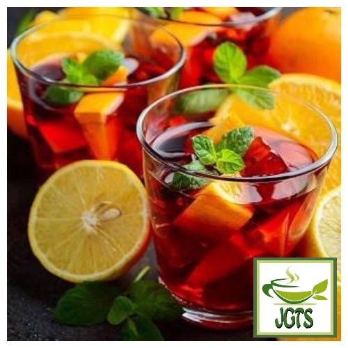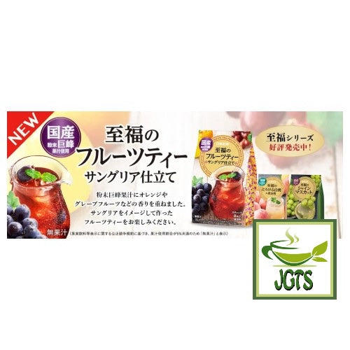 This fruit tea sangria is made with powdered Kyoho grape juice produced in Japan, and is full of the fresh aroma of orange and grapefruit. You can enjoy a delicious Non-alcoholic Sangria anytime. The fresh aroma of Sangria is recommended when you want to relax.