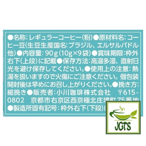 Manufacturer: Ogawa Coffee Co., Ltd. 75 Nishikyogoku Kitashokyo-cho, Ukyo-ku, Kyoto, Japan 615-0802.