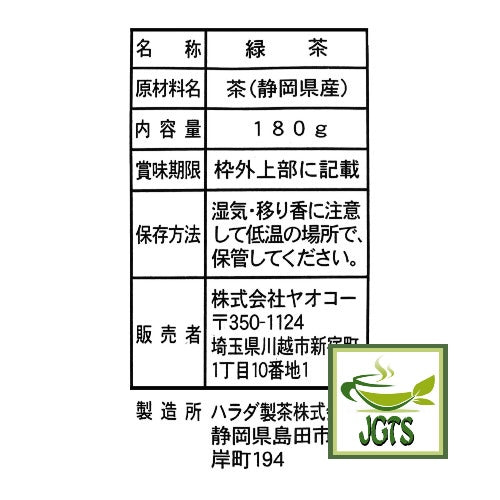 Manufacturer: Harada Tea Co., Ltd. 194 Kishimachi, Shimada City, Shizuoka Prefecture, Japan.