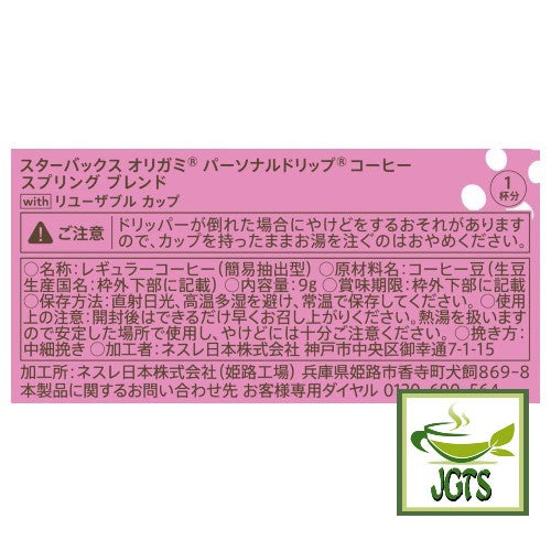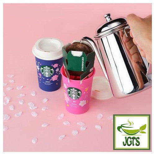 Starbucks Origami Personal Drip Coffee Spring Blend – a delightful seasonal treasure that not only celebrates the arrival of spring and cherry blossoms but also elevates your coffee experience to new heights. This exquisite coffee set includes one "drip type" individually wrapped coffee filter packet and a re-useable cup in either Pink or Purple, representing the enchanting day and night sakura – a true "kawaii ne" (cute, isn't it?) touch. (Color will be shipped at random, but feel free to contact us if you have a preference.)