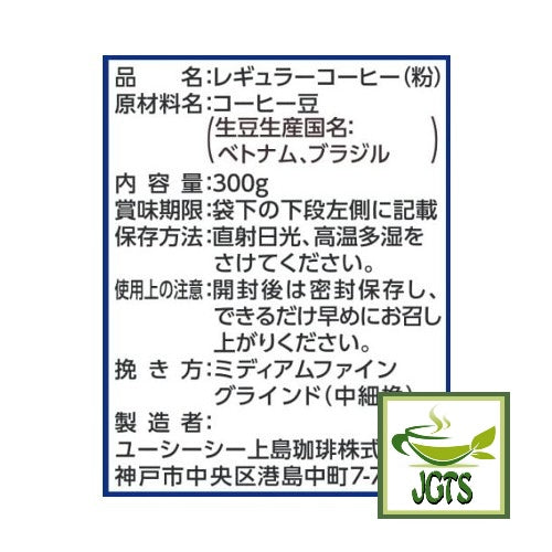 Manufacturer: UCC Ueshima Coffee Co., Ltd. 5-1-6 Tamon-dori, Chuo-ku, Kobe. Inquiry Phone: 0120-050-183.