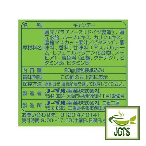 Ingredients Nutrition: Reduced palatinose (manufactured in Germany), reduced starch syrup, herbal extract, quince extract, concentrated Muscat fruit juice/vitamin C, acidulant, flavoring, sweetener (aspartame/L-phenylalanine compound, stevia), coloring agent (red yeast rice, gardenia).